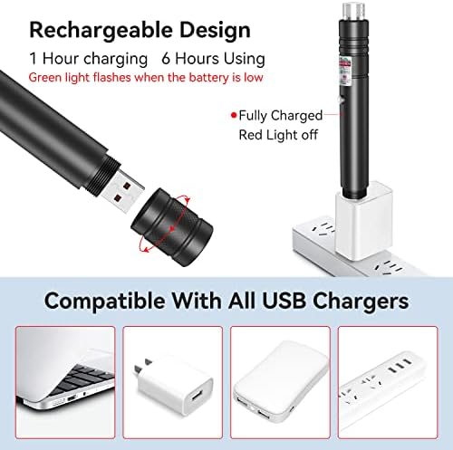 To ensure uninterrupted usage, this laser pointer comes with a rechargeable battery, eliminating the need for constant replacements. Additionally, it features a convenient USB charging port, providing you with a stress-free charging experience wherever you go.