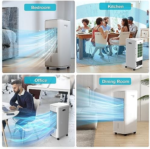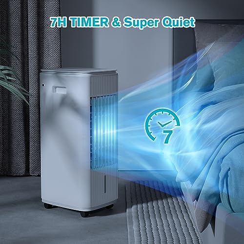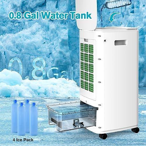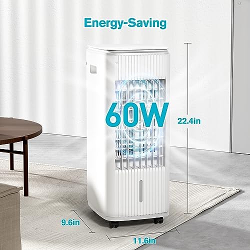 The 0.8-gallon water tank capacity ensures continuous operation throughout the day and night. Simply fill the tank with water or ice packs (included) and let the air cooler work its magic. The evaporative cooling technology takes advantage of the natural process of water evaporation, cooling the air while adding much-needed moisture to combat dryness.