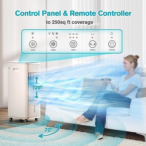 Equipped with a convenient remote control, this Portable AC offers absolute control right at your fingertips. You can easily adjust the fan speed, set the timer for up to 7 hours, and activate the optional 70° oscillation feature for enhanced air circulation. Whether you prefer a gentle breeze or a cool blast, the three adjustable speed settings cater to your desired comfort level.