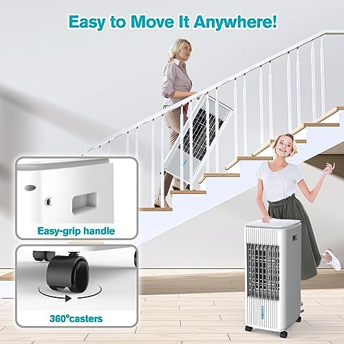 Operating at whisper-quiet levels, this portable swamp cooler allows you to concentrate on your work or enjoy a peaceful sleep without any disturbance. Its compact and lightweight design makes it easy to move from room to room, providing relief wherever you go. Additionally, the built-in handle and cord storage offer added convenience for transportation and storage.